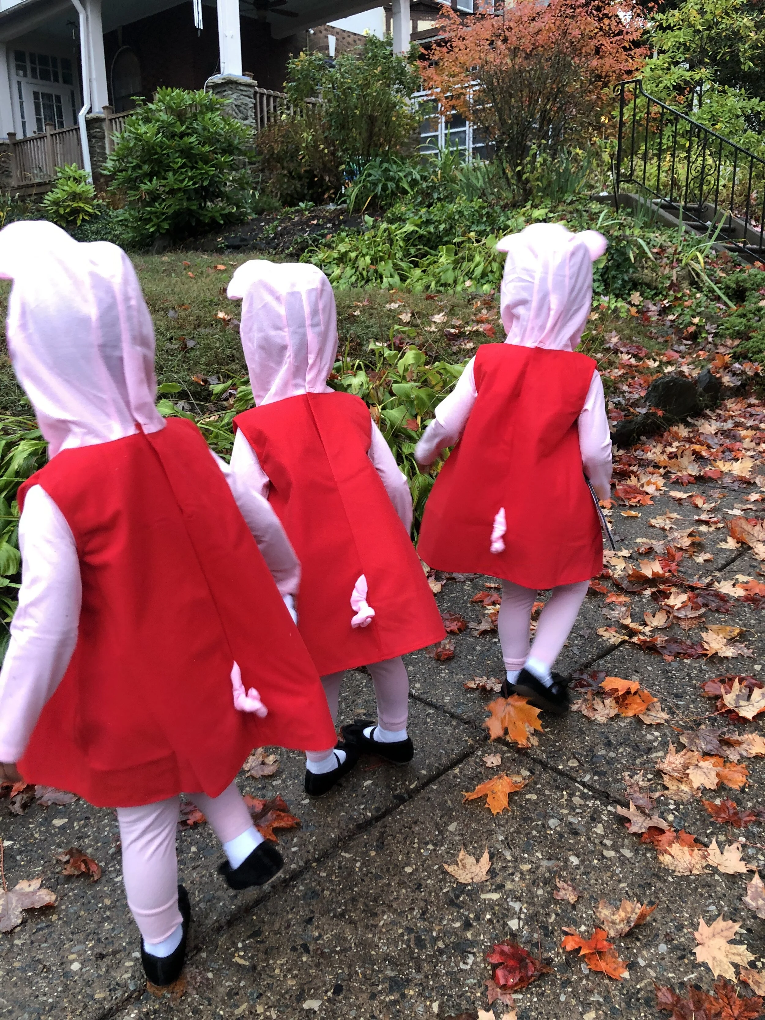 Annnddd just that quick Halloween happened! The girls were the cutest Peppa Pigs and Kanon was The Flash (not pictured). Needless to say it was a success! It was very fitting for Kanon to be The Flash this year, because, he was so fast on Halloween, I couldn’t get a picture of him, smh! He went from School, to Karate, to changing his clothes and going trick or treating. He loved it. I’m so glad it was a mild evening, weather wise because dad and him were able to go out in the neighborhood. Meanwhile it was the first time we gave out candy at the house. What a treat, literally for every person that came to our house. The girls and Bryant were giving out candy. As Bryant’s handing out candy the girls are equally giving out candy to the same people. By the time I got home, which was roughly an hour later, all the candy and fruit snacks were shockingly gone!!! No one rang the bell once I got home, so it all worked out. I got the Peppa Pig costumes from wholesalehalloweencostumes.com. I waited till the last minute because I was unsure what the girls should be, but it made total sense for them to be their favorite tv character this year. The package came super fast, after ordering and there were three! PERFECT! One less thing on my to-do-list. I cut out little teddy’s for each of them because of course they needed a prop. Whats Peppa with out her Teddy?! Right?!